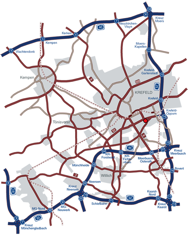 mit öffentlichen Verkehrsmitteln ab Krefeld Hauptbahnhof:
